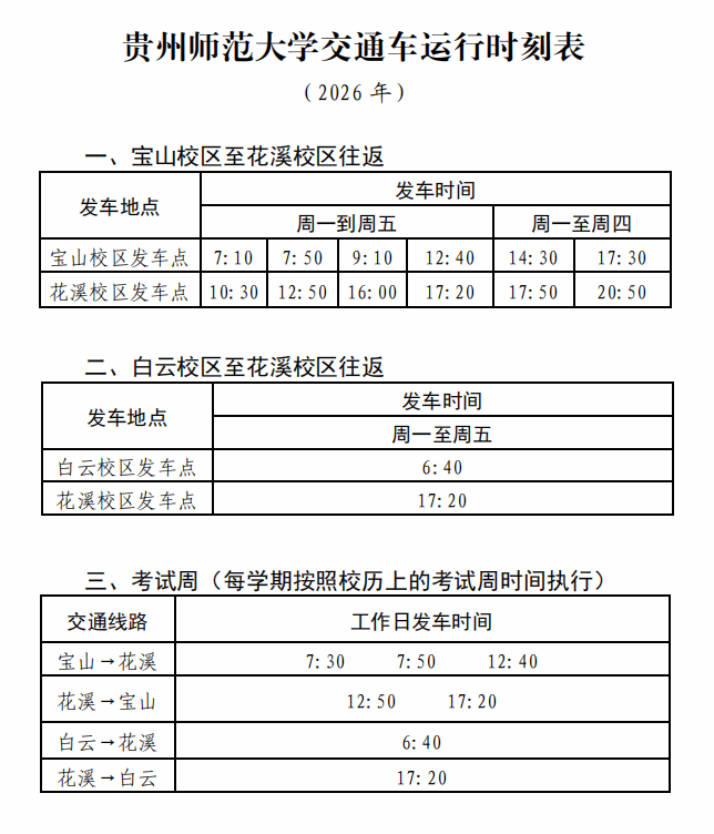 贵州师范大学交通车运行时刻表